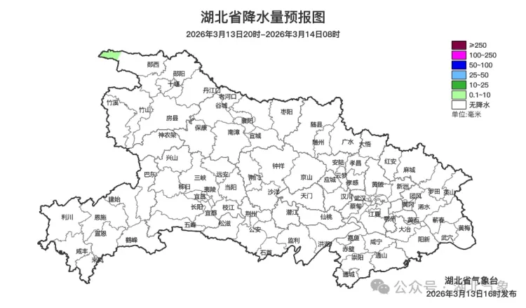 预报来源:湖北省气象台2026年3月13日16时预报