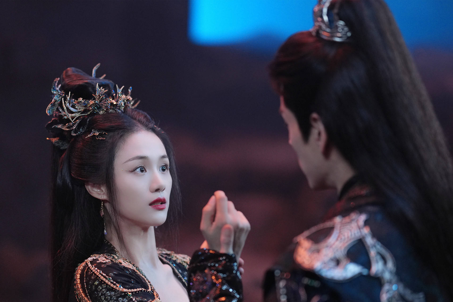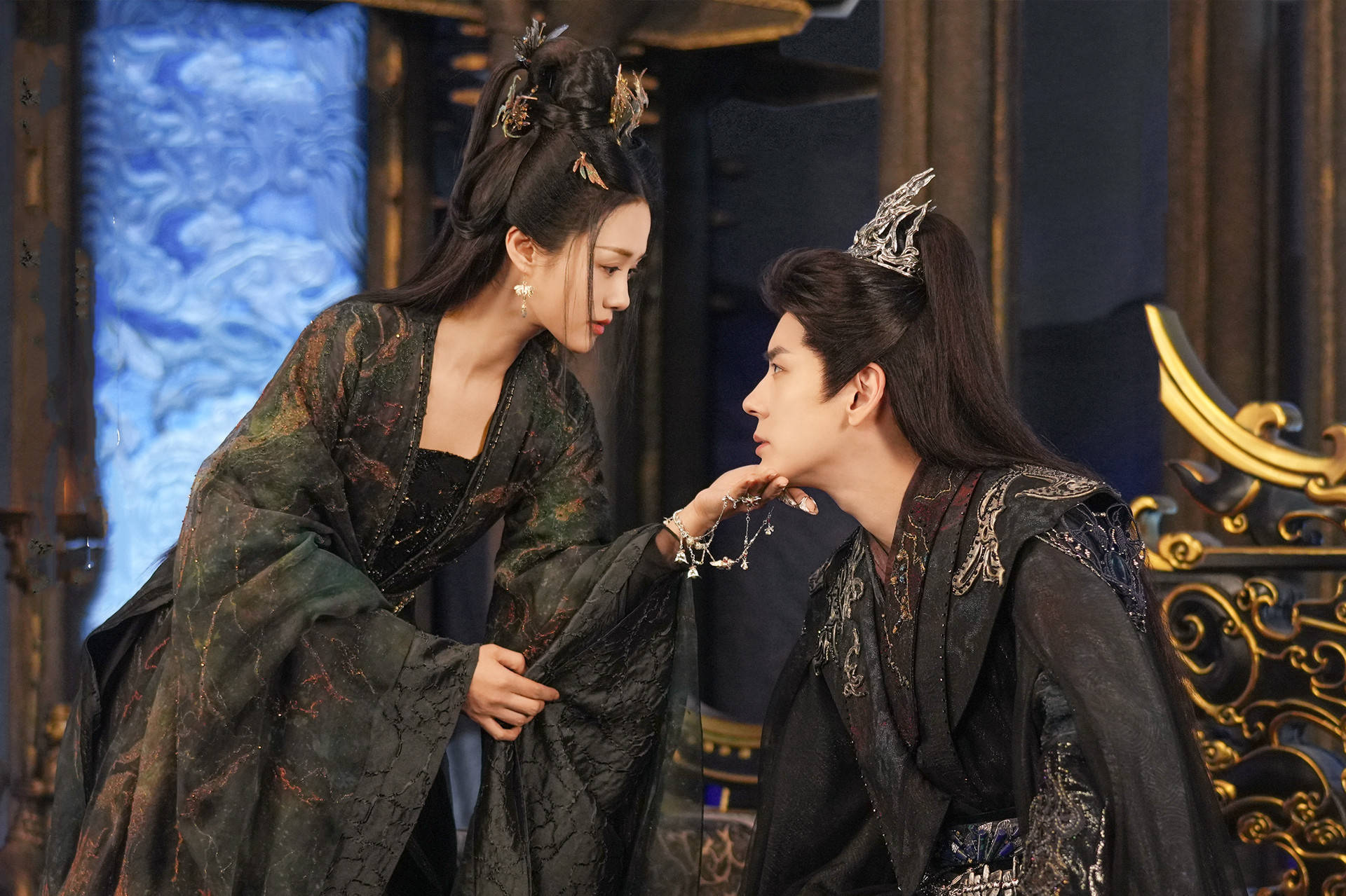 两个人对戏时张力满满,一个曾以锁链禁锢对方身体,一个如今以心烛掌控对方魂魄,互相强制又彼此沉沦,每个眼神流转都在诉说着爱恨拉扯。